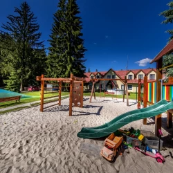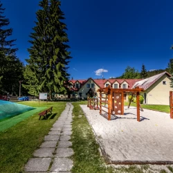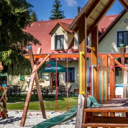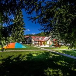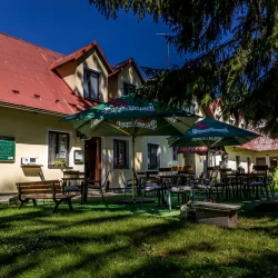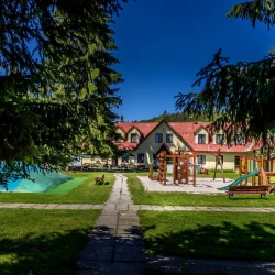 Areál penzionu nedávno prošel kompletní rekonstrukcí. Hosté mohou využít restauraci s celodenním stravováním, venkovní terasu s příjemným posezením a obsluhou. K dispozici je také dětské hřiště s pískovištěm, prolézačkami a sportovní hřiště pro fotbal či volejbal. Pro děti je připravena herna, vnitřní a venkovní učebna, trampolíny, pingpongové stoly a půjčovna her a sportovního vybavení. Ubytovaní hosté mohou využít venkovní bazén, saunu s vířivkou a bezpečnou úschovnu kol. Večer je ideální čas na grilování u ohniště nebo na posezení v altánech, v letních měsících i pod velkým párty stanem.